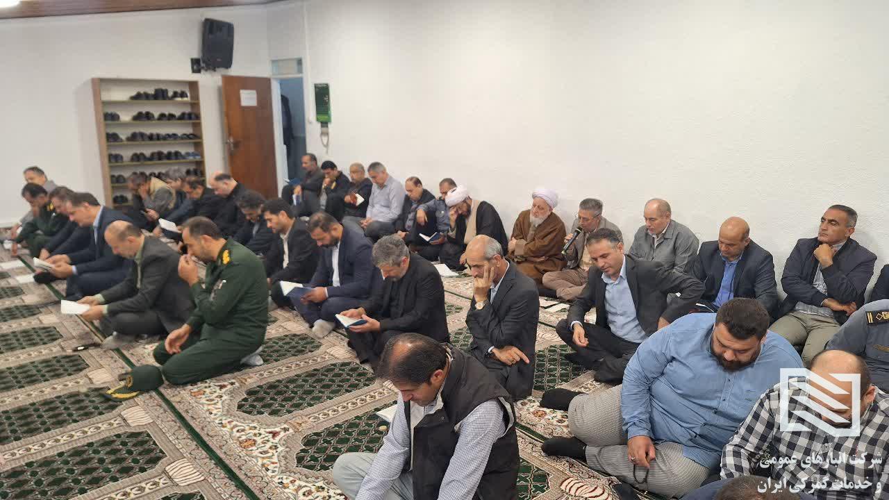 مراسم پرفیض زیارت عاشورا و گرامیداشت هفته دفاع مقدس باحضور حضرت حجت الاسلام و المسلمین صالحیان امام جمعه محترم شهرستان ، جناب آقای دکتر انصاریان مدیرکل محترم گمرک، جناب سرهنگ شریفی جانشین فرماندهی محترم سپاه آستارا ، جناب آقای قهرمانی معاون محترم سیاسی امنیتی فرماندار و سایرمسئولین شهرستان در محل نمازخانه شرکت انبارهای عمومی و خدمات گمرکی آستارا برگزار گردید.